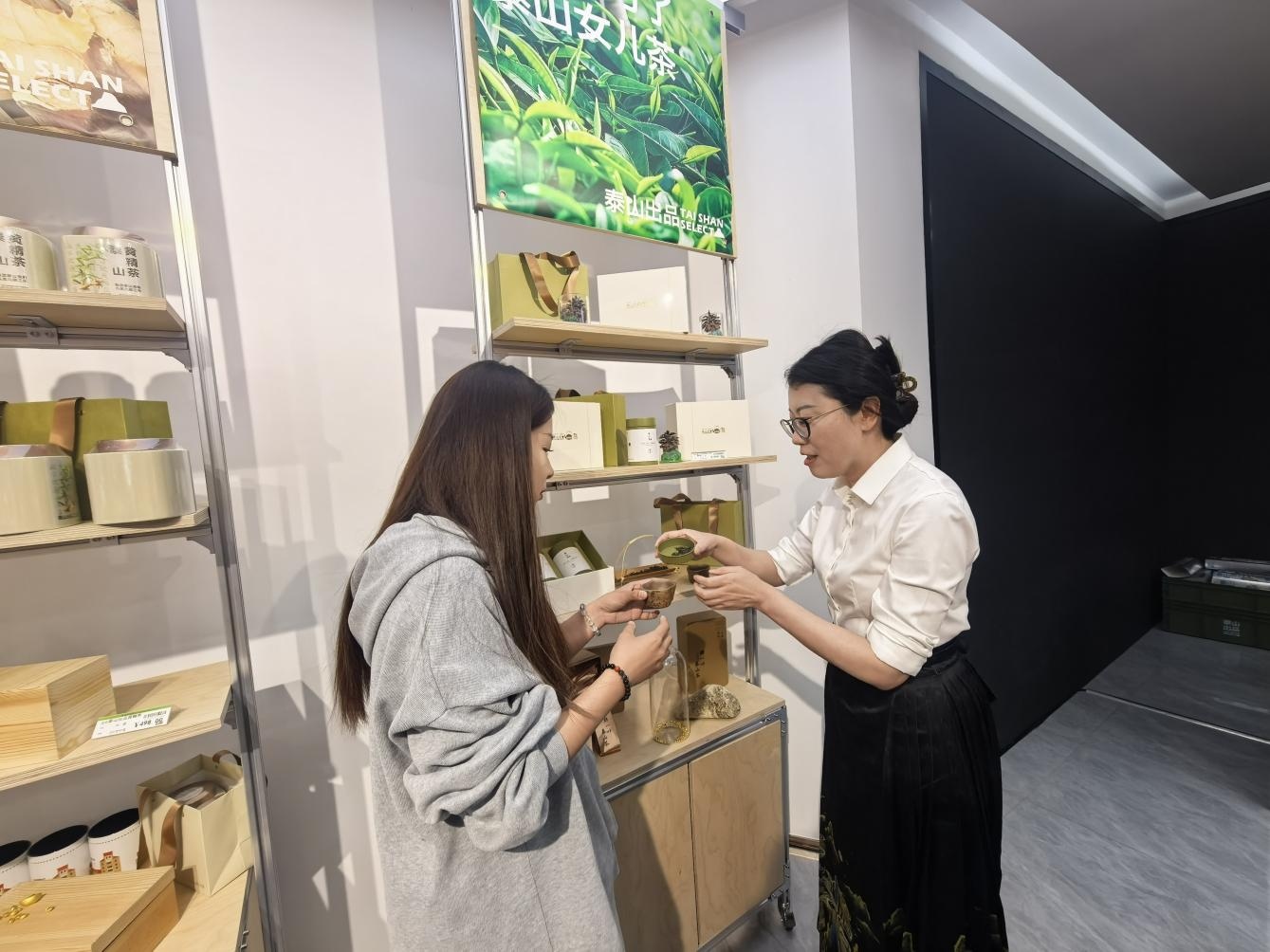 現(xiàn)場(chǎng)設(shè)置免費(fèi)品鑒、茶禮選購(gòu)等環(huán)節(jié),游客可駐足品茗、交流問茶。眾多游客在品鑒后紛紛點(diǎn)贊,將泰山綠茶作為伴手禮選購(gòu),既留存旅途記憶,也把泰山茶香帶回家。